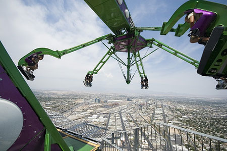 The Stratosphere Tower - destination - thrillseeker heavenInsanity - The Ride extends 64 feet over the edge of The Stratosphere Tower and spin passengers at up to three G`s. As the ride spins faster and faster, the riders are propeled to a 70-degree angle. Riders experience the thrill of being flung over the edge of The Stratosphere Tower and literally facing downward at the City of Las Vegas below. X-Scream is shaped like a giant teeter-totter. It is an open vehicle that propels riders head-first, 27 feet over the edge of The Stratosphere Tower and dangles them weightlessly above the Strip before pulling it`s riders back and over again for more! The Big Shot thrill ride catapults 16 riders from the 921-foot high plataform up The Stratosphere Tower mast to a height of 1,081 feet. Traveling at 45 miles per hour, riders experience 4G`s as they reach the very top, and feel negative G`s on the way down. ![]() ![]() ![]() ![]() <<<--- Phantom - The Las Vegas Spetacular at The Venetian Monte Carlo Pub and Brewery --->>> Read more about Las Vegas> Las Vegas shows - buy your tickets now> Godskitchen and SIN at Hard Rock Hotel Las Vegas > The Palms Las Vegas nightlife - 32 > Treasure Island Las Vegas promotions Oct10 > Godskitchen and SIN at the Hard Rock Hotel |
